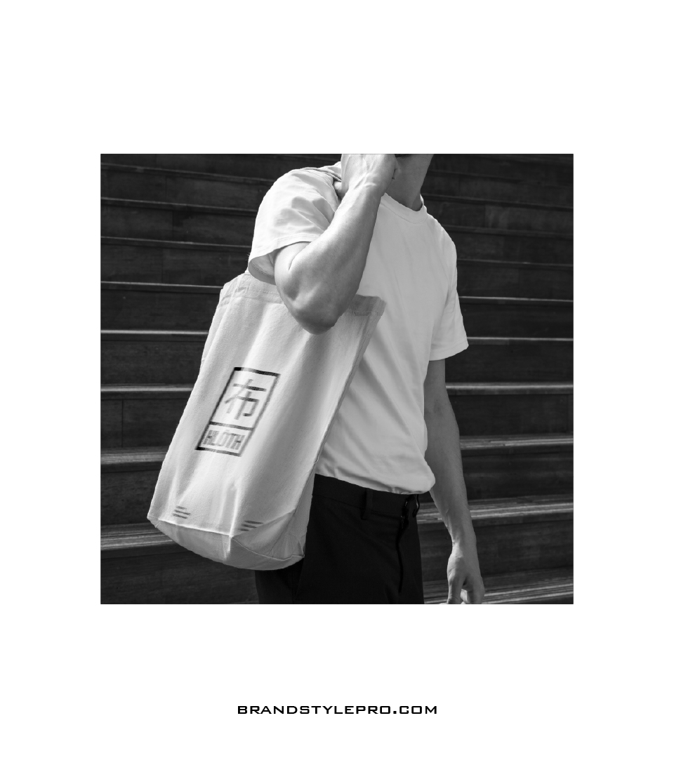 To help you understand how a complete fashion brand identity works, let us look at a real example: KLÔTH. This brand identity represents a bold, minimal, and culturally expressive aesthetic. The KLÔTH logo is composed of a clean square frame containing a stylized symbol inspired by Asian calligraphy. This gives the brand a mysterious and creative identity that instantly stands out. The name “KLÔTH” appears below the symbol in a strong rectangular base, giving the entire logo a luxurious label-like appearance often seen in high-end apparel.