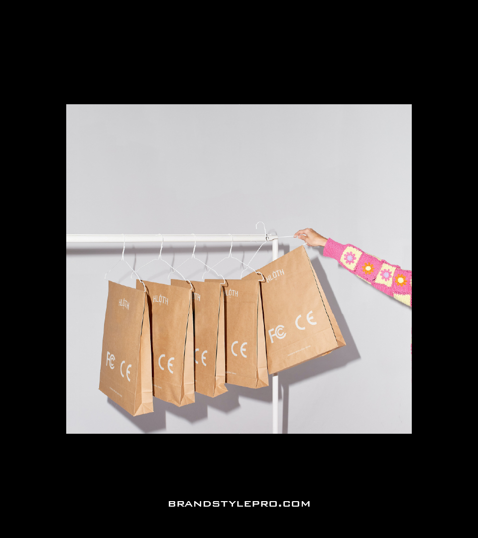 Packaging is also covered in detail. It describes how your tags, labels, shopping bags, tissue paper, and boxes should look to match your brand identity. The way your packaging appears contributes to the perceived value of your brand. Luxury brands carefully design every detail, and a brand book ensures your packaging feels premium too.